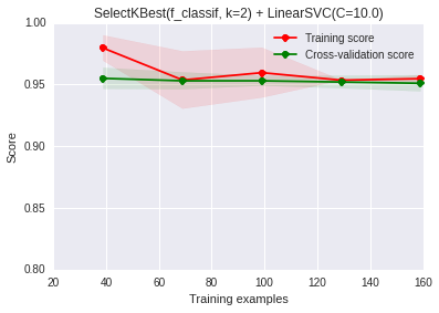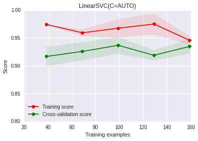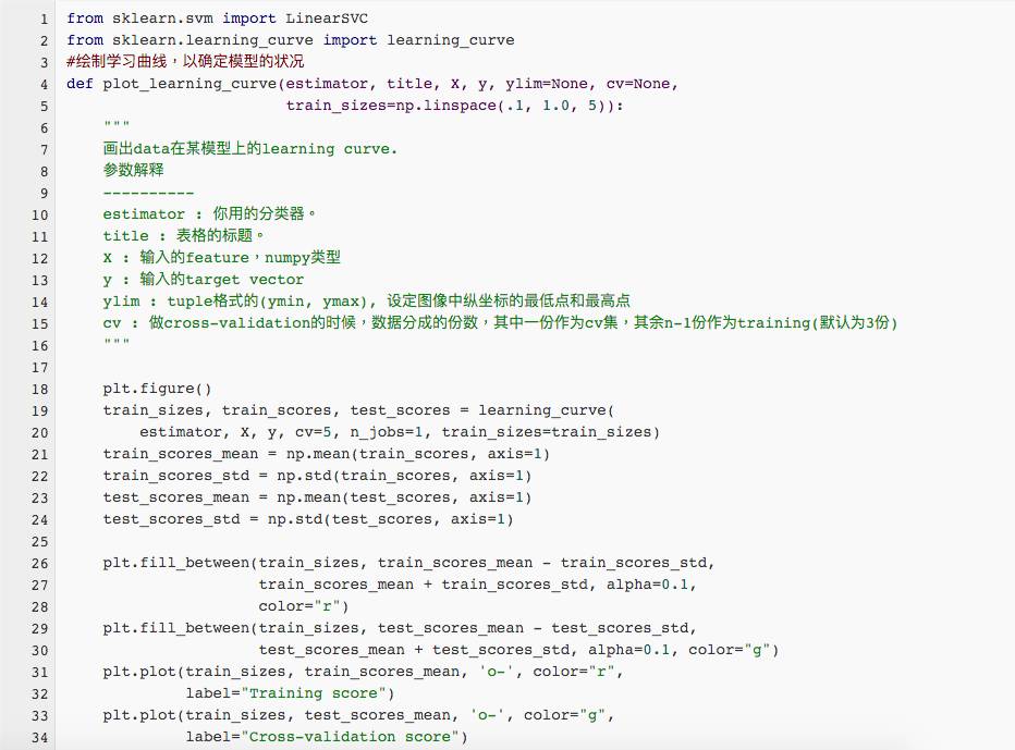在上面提到的那样一份数据上,我们用LinearSVC可能就会有点慢了,我们注意到机器学习算法使用图谱推荐我们使用SGDClassifier。其实本质上说,这个模型也是一个线性核函数的模型,不同的地方是,它使用了随机梯度下降做训练,所以每次并没有使用全部的样本,收敛速度会快很多。再多提一点,SGDClassifier对于特征的幅度非常敏感,也就是说,我们在把数据灌给它之前,应该先对特征做幅度调整,当然,用sklearn的StandardScaler可以很方便地完成这一点。