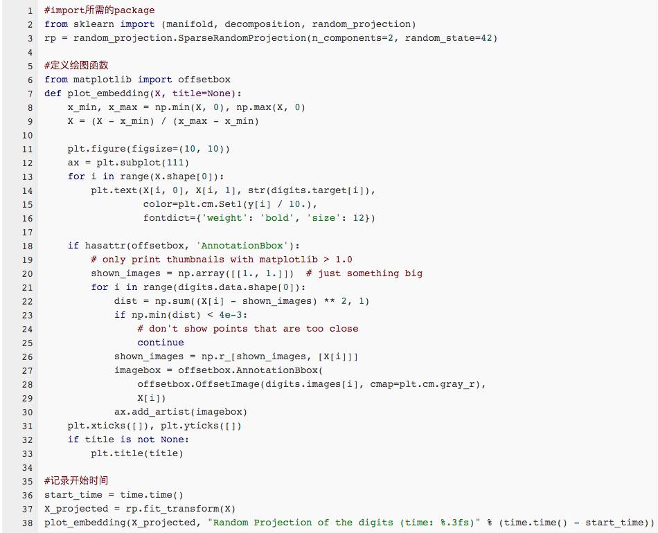 我们总共有1083个训练样本,包含手写数字(0,1,2,3,4,5),每个样本图片中的像素点平铺开都是64位,这个维度显然是没办法直接可视化的。下面我们基于scikit-learn的示例教程对特征用各种方法做降维处理,再可视化。