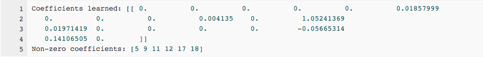 你看,5 9 11 12 17 18这些维度的特征获得了权重,而第11维权重最大,也说明了它影响程度最大。