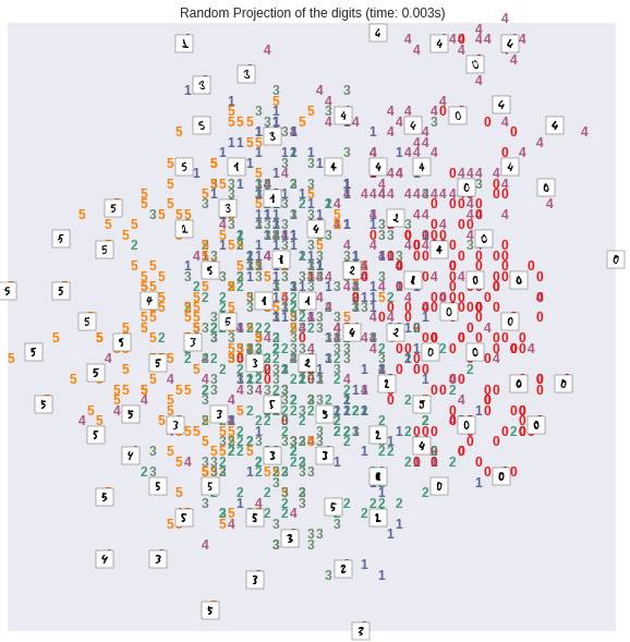 我们发现结果非常的惊人,似乎这个非线性变换降维过后,仅仅2维的特征,就可以将原始数据的不同类别,在平面上很好地划分开。不过t-SNE也有它的缺点,一般说来,相对于线性变换的降维,它需要更多的计算时间。也不太适合在大数据集上全集使用。
